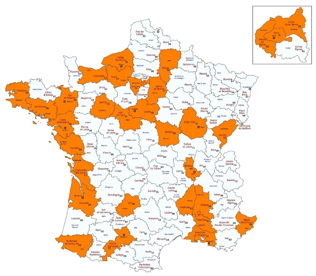 Carte des départements où au moins un parcours biblique est ouvert :